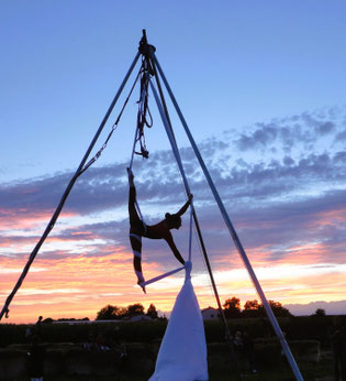 Nach einem gemeinsamen Aufwärmen gehen wir über in ein freies Training. Wer schon Erfahrung hat, kann sich hier mit anderen austauschen und inspirieren lassen. Wer noch nie Luftartistik